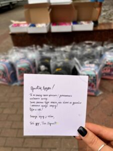 «Общаясь с женами и матерями воинов «Азова», я поняла, что важной задачей накануне поступления в школу является непосредственная подготовка детей к школе. Не все семьи в состоянии выделить из своего бюджета средства на оплату вещей, необходимых первокласснику для учебы и посещения школы. В этом и заключается смысл «школьного рюкзака», который уменьшает затраты семей азовцев, позволяя детям продолжать учёбу обеспеченными всеми школьными принадлежностями», — объясняет звезда.